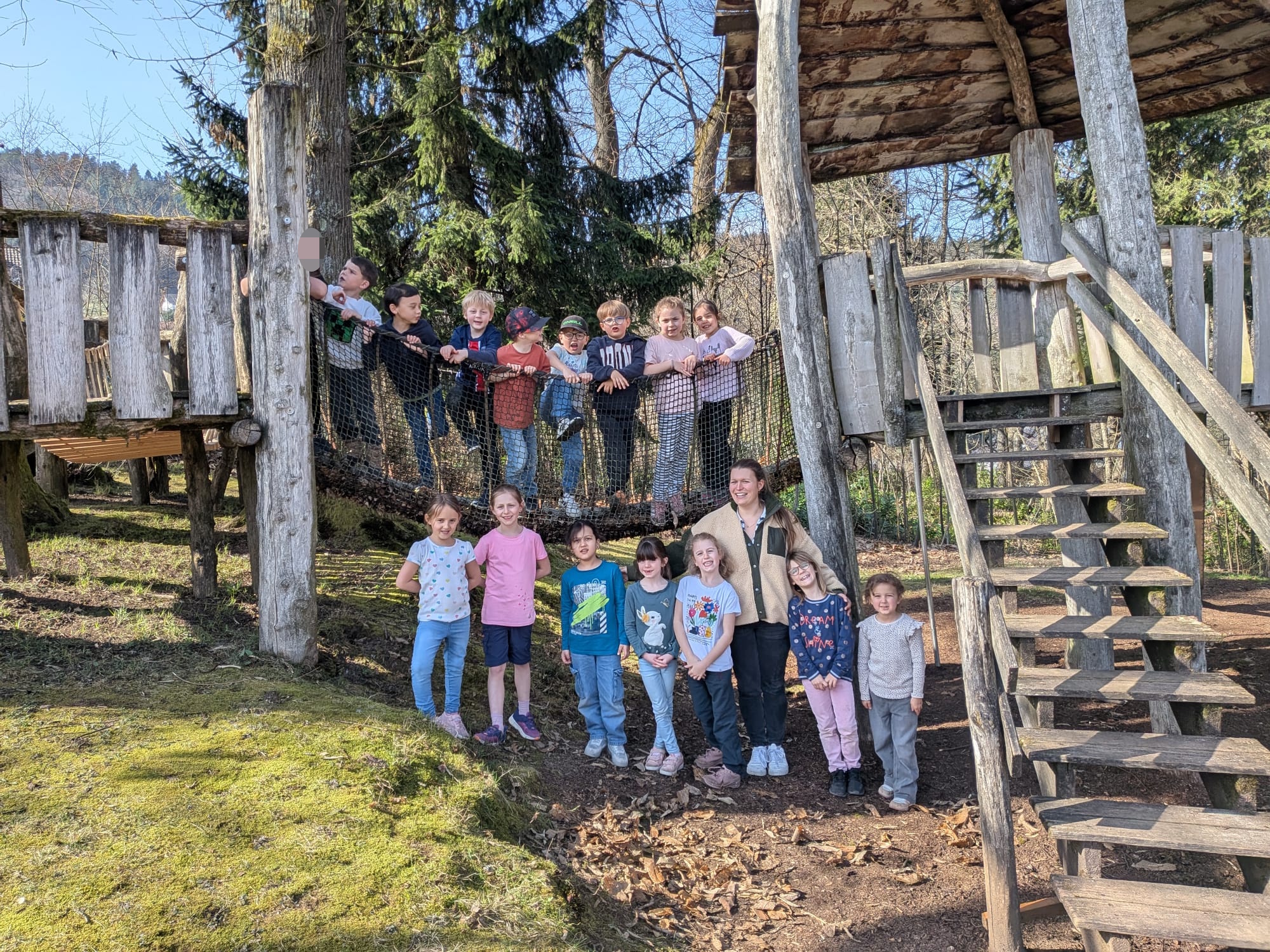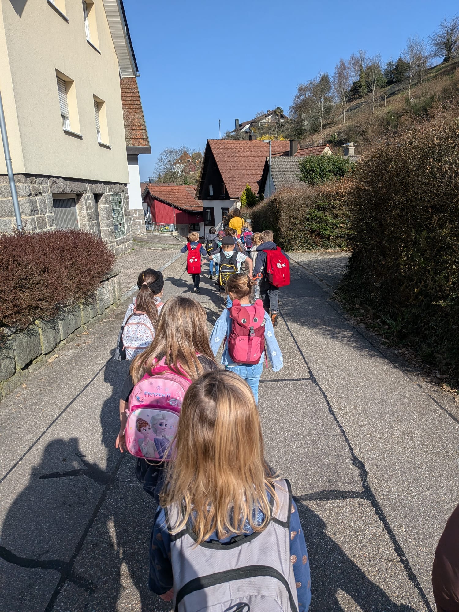 Natürlich durfte auch eine Verschnaufpause nicht fehlen: Auf einem Spielplatz im Bühlertal wurde ausgiebig gespielt, gelacht und gemeinsam gevespert. Frisch gestärkt und mit vollen Mägen machte sich die Klasse anschließend wieder auf den Rückweg zur Schule. Dabei liefen die Kinder sogar einige ihrer eigenen Schulwege ab.