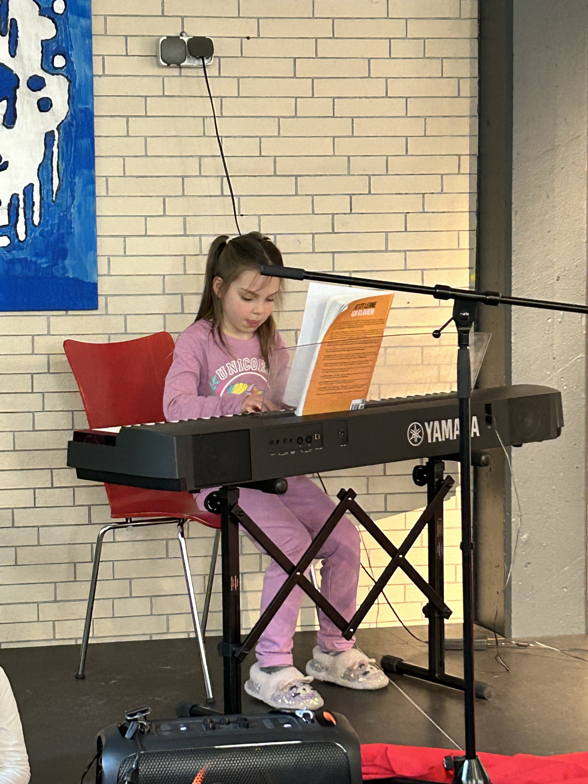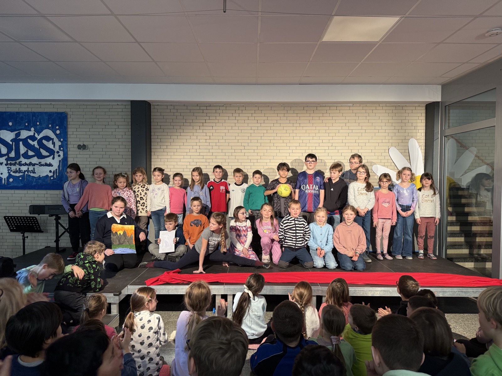 In einem von den Kindern selbst zusammengestellten, bunten Programm zeigten sie mutig ihre Talente und Begabungen. Die Darbietungen reichten von Turnen, Fußball, Tanz, Singen, Klavier und Flöte bis hin zur Gitarre, Sologesang, Zauberei, Kunstwerken, und Witzen. Am Ende der besonderen Stunde standen viele Kinder aus den verschiedenen Klassenstufen gemeinsam auf der Bühne und wurden mit tosendem Applaus belohnt.