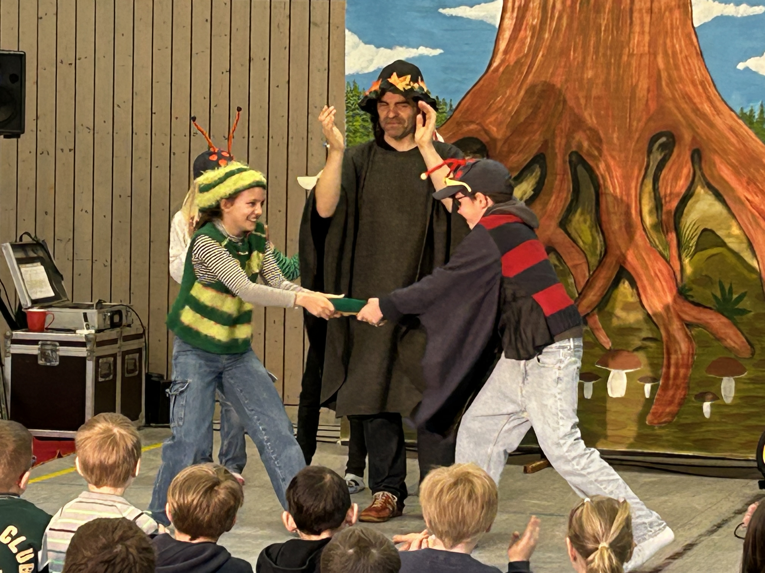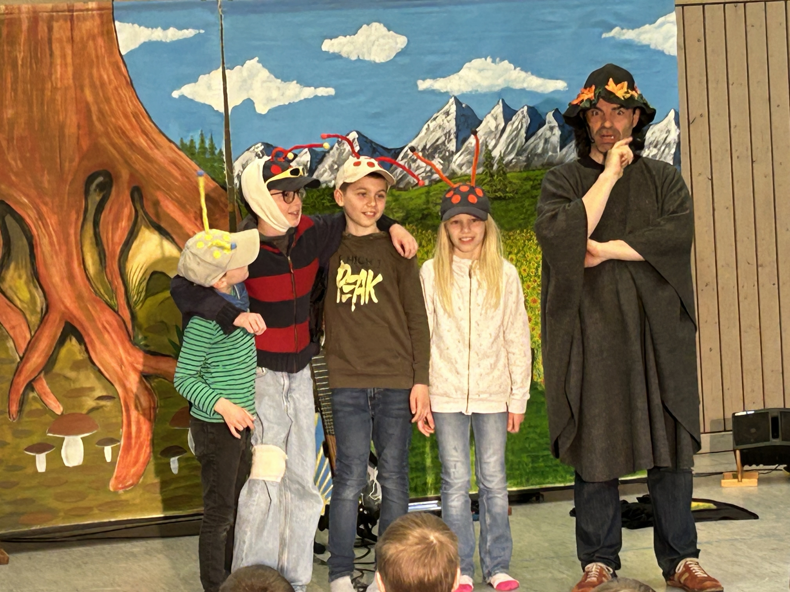 Das Stück „Wenn sich zwei streiten“ erzählte die Geschichte des Käfers Kurt, der die neue Mitschülerin Rita Raupe zunächst ausgrenzt. Doch durch die Freundschaft, Mut und Unterstützung anderer, allen voran Victoria Motte und eine geheimnisvolle Schmetterlingsfee, verändert sich die Situation und zeigt eindrucksvoll, wie ein respektvolles Miteinander gelingen kann.