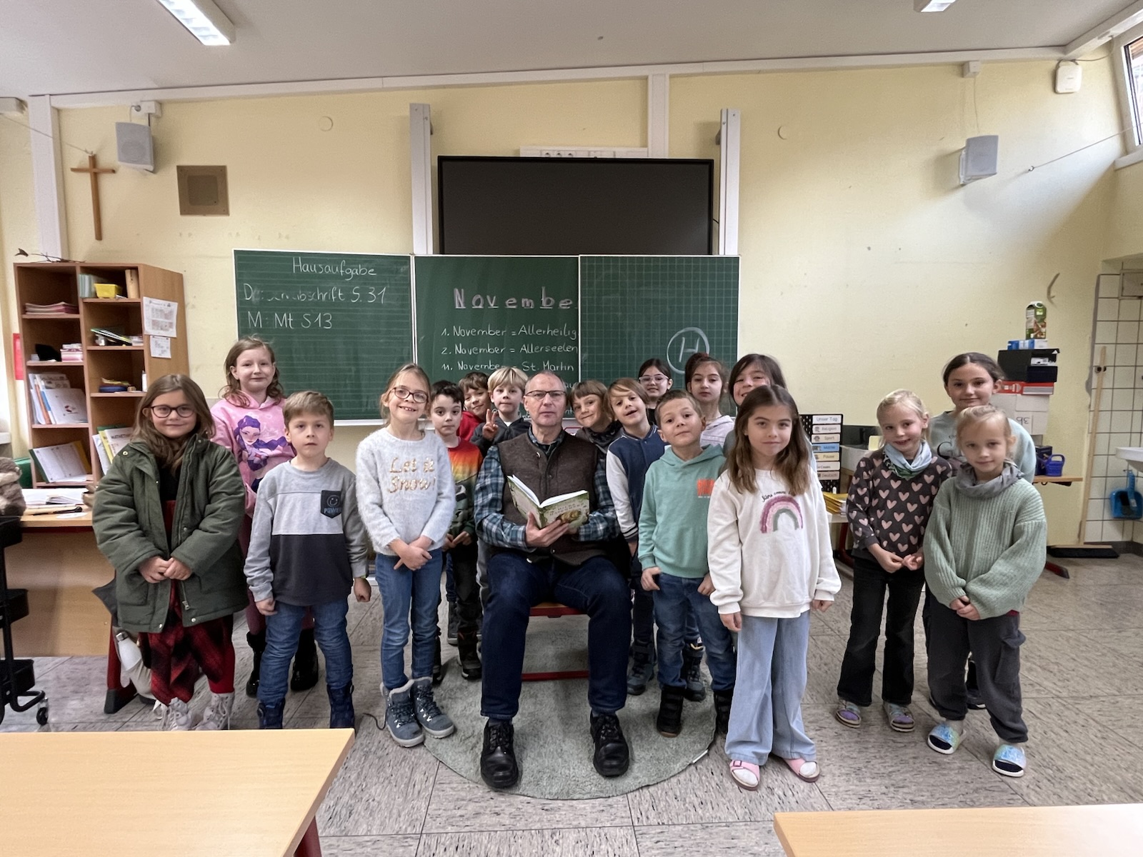 Das Kollegium begrüßte am vergangenen Freitag, 21. November 2025 die stellv. Amtsleiterin Frau Ulla Meier, Herrn Amtsleiter Markus Brügel und Herrn Pfarrer Sebastian Marcolini zu der Leseförderung. Alle drei Gäste hatten ein selbstgewähltes Buch in der Tasche.