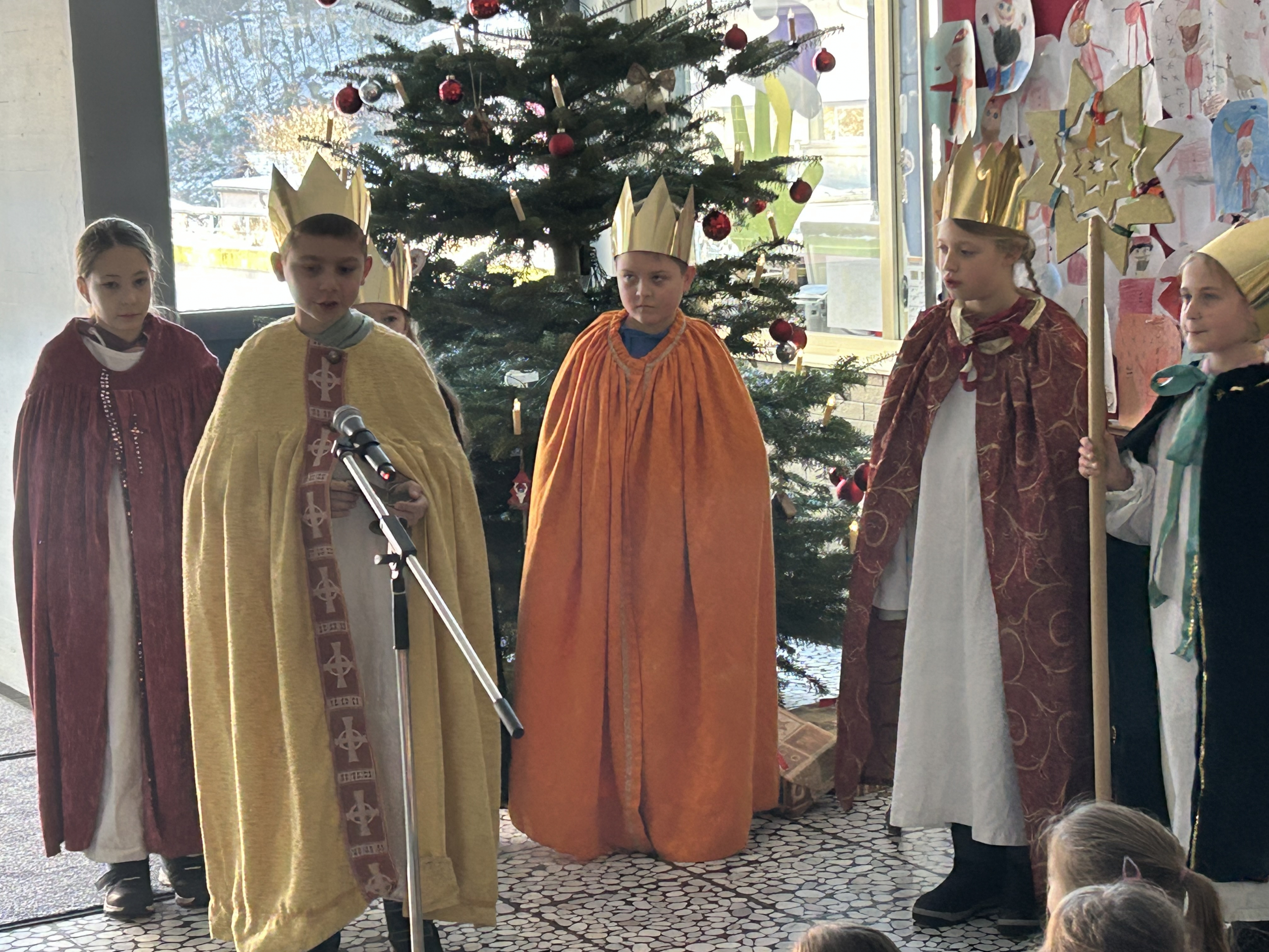 Acht Kinder der eigenen Schule besuchten am ersten Schultag des Jahres 2026 als Sternsinger die Schule. Die Dr.-Josef-Schofer Schüler und Schülerinnen sowie das Lehrerteam freuen sich immer über den besonderen Besuch. Mit ihren Kronen, Gewändern und dem traditionellen Segensspruch brachten sie den Segen für das neue Jahr in die Schule.